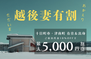[地元限定]グランピングが最大10%OFF(最大5,000円割引) 越後妻有(十日町市・津南町)にお住まいの方、またはご出身者の皆様へ、日頃の感謝を込めて特別なキャンペーンをご用意しました。冬限定のグランピングプランで、 […]